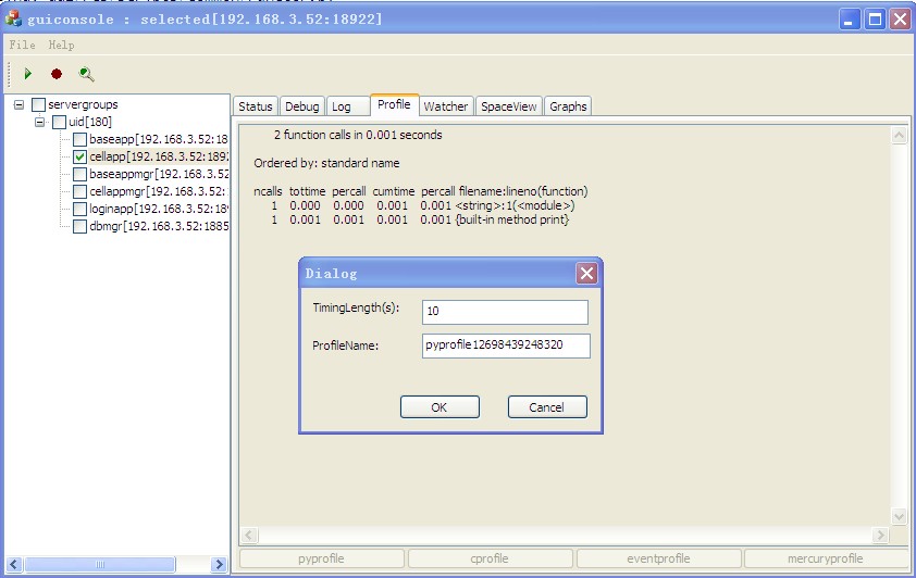 选中profile选项卡,选择pyprofile,可以查看到。