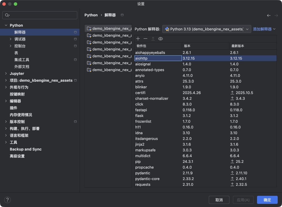 pip install aiohttp或者在pycharm中 设置 -> Python -> 解释器 中安装 aiohttp
