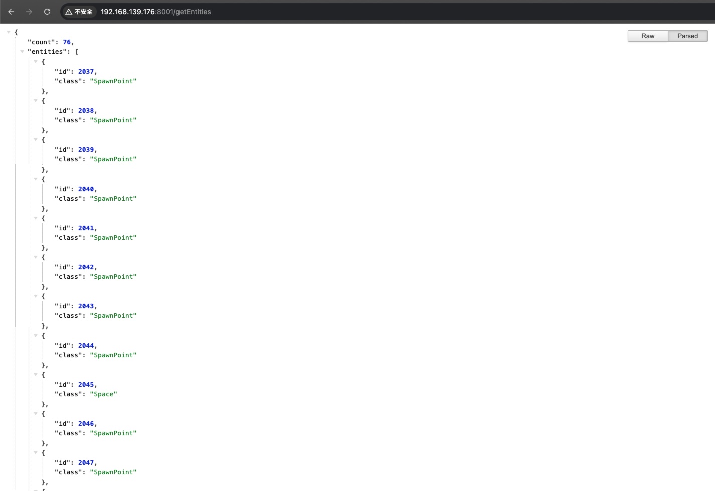 在浏览器中访问http://127.0.0.0:8001/getEntities