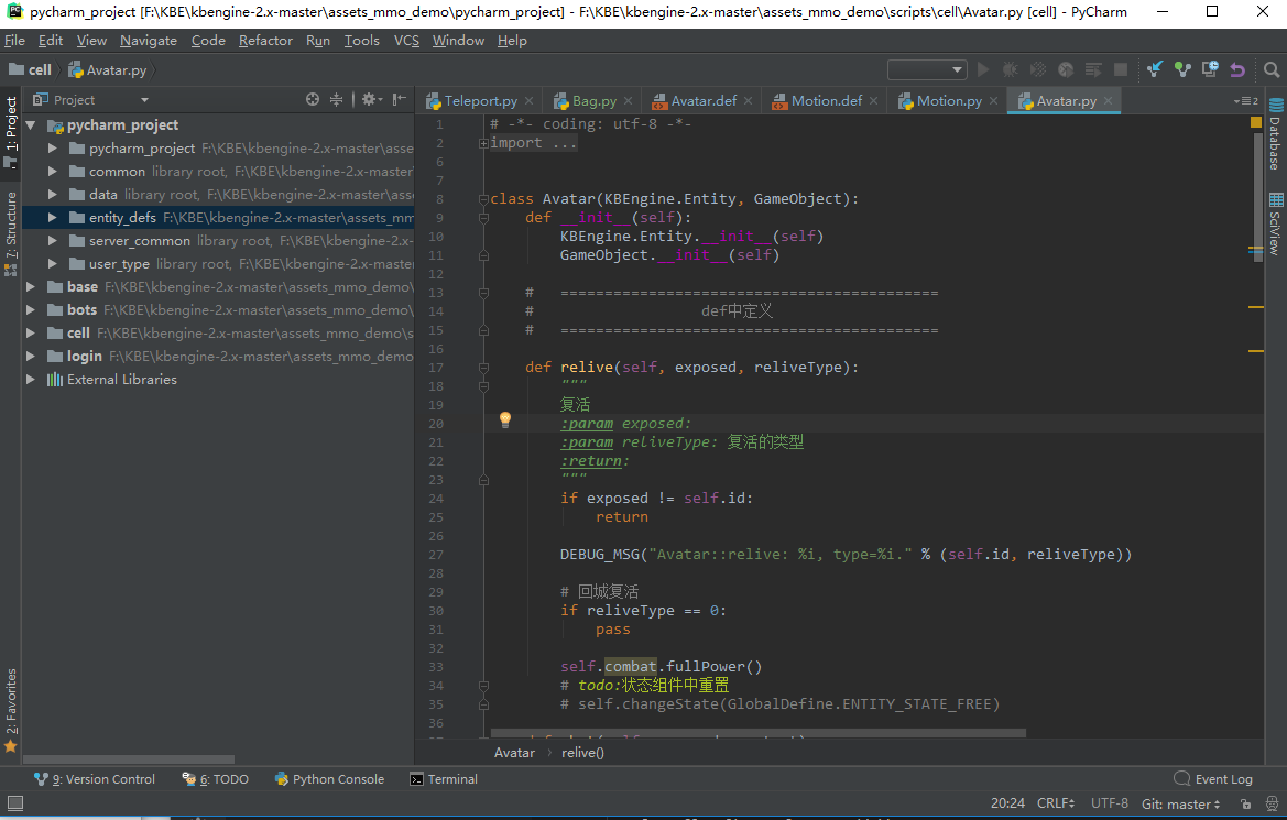kbengine.py,在同一个project时,编译器无法区分你是baseapp里的kbengine模块还是cellapp里的kbengine模块。此时,两个模块有差异的代码就无法正确提示。
