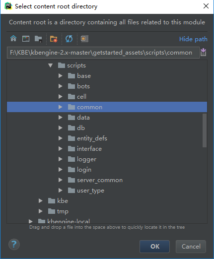 再弹出路径选择窗口,我们选择common、data、server_common以及user_type(entity_defs只是配置文件,没有编译意义,所以这里不选择),结果如下: