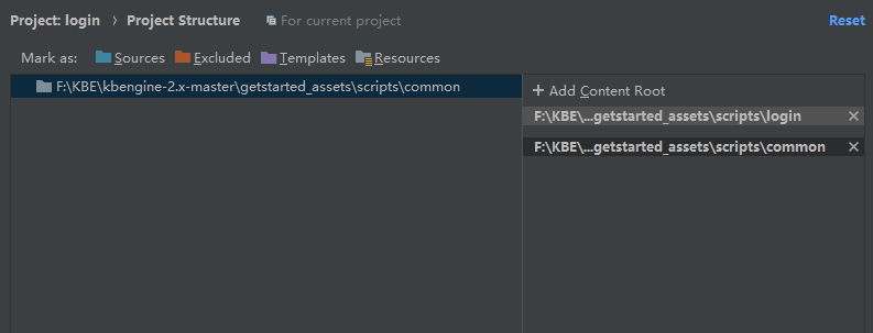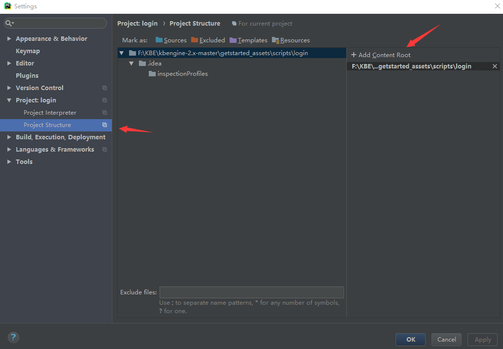 选中Project: login中的Project Structure,并点击右侧Add Content Root