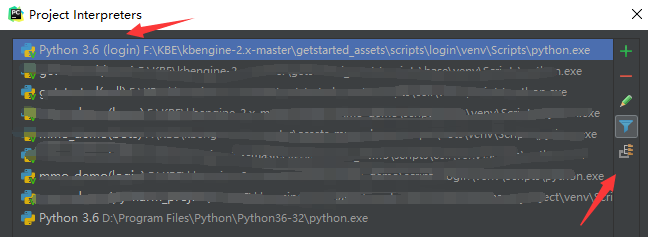 再次点击小齿轮,选择Show All,选择刚才生成的Interpreter(Python 3.6(login)),点击右侧Show paths