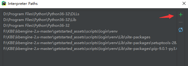 弹出Interpreter Paths窗口,我们点击右侧加号,增加一个Path。
