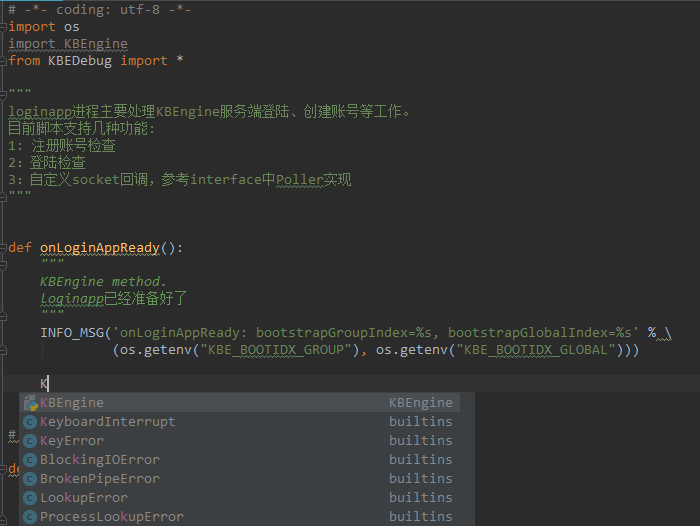 赞!我们的KBEngine模块已经正确的提示出来了!!我们继续: